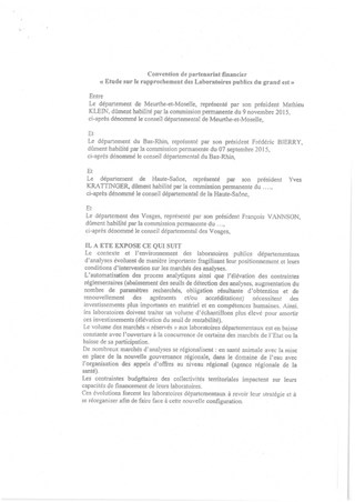 Etude de rapprochement des laboratoires publics départementaux d'analyses de la Meurthe-et-Moselle, du Bas-Rhin, de la Haute-Saône et des Vosges - Projet de convention
