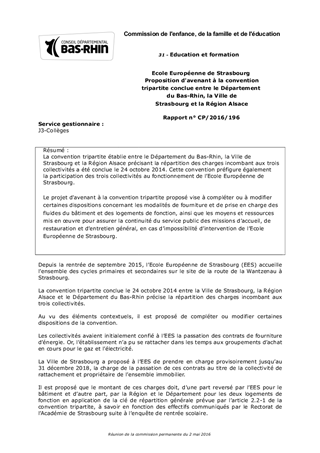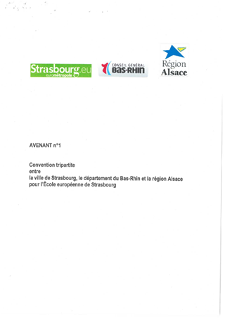 Ecole Européenne de Strasbourg Proposition d'avenant à la convention tripartite conclue entre le Département du Bas-Rhin, la Ville de Strasbourg et la Région Alsace
