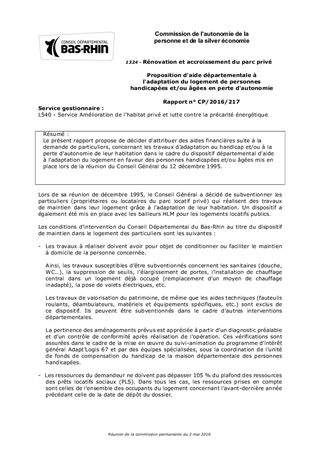 Le présent rapport propose de décider d'attribuer des aides financières suite à la demande de particuliers, concernant les travaux d’adaptation au handicap et/ou à la perte d’autonomie de leur habitation dans le cadre du dispositif départemental d'aide à l'adaptation du logement en faveur des personnes handicapées et/ou âgées mis en place lors de la réunion du Conseil Général du 12 décembre 1995.