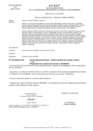 Proposition de cession de terrain à SOLBACH