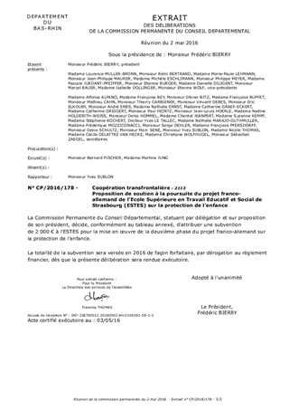 Proposition de soutien à la poursuite du projet franco-allemand de l'Ecole Supérieure en Travail Educatif et Social de Strasbourg (ESTES) sur la protection de l'enfance