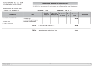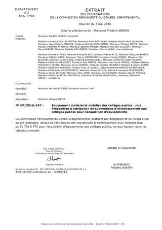 Proposition d'attribution de subventions d'investissement aux collèges publics pour l'acquisition d'équipements