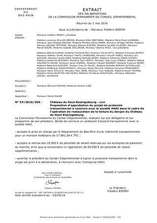 Proposition d'approbation du projet de protocole transactionnel à conclure avec la société HAKI dans le cadre de l'opération de restauration de la toiture du donjon du Château du Haut-Koenigsbourg.