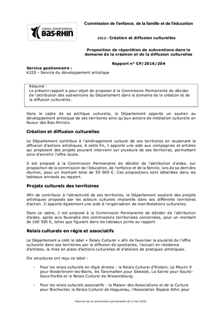 Le présent rapport a pour objet de proposer à la Commission Permanente de décider de l'attribution des subventions du Département dans le domaine de la création et de la diffusion culturelles.