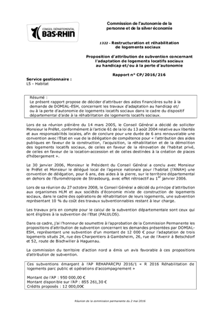 Le présent rapport propose de décider d'attribuer des aides financières suite à la demande de DOMIAL-ESH, concernant les travaux d’adaptation au handicap et/ou à la perte d’autonomie de logements locatifs sociaux dans le cadre du dispositif départemental d’aide à la réhabilitation de logements locatifs sociaux.