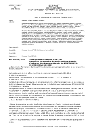 Proposition de soumettre à enquête publique le projet d'opération d’aménagement foncier de GEISPOLSHEIM, FEGERSHEIM et LIPSHEIM