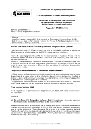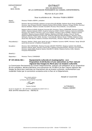 Proposition d'attribution d'une subvention au Parc naturel régional des Vosges du Nord pour sa mission culturelle.