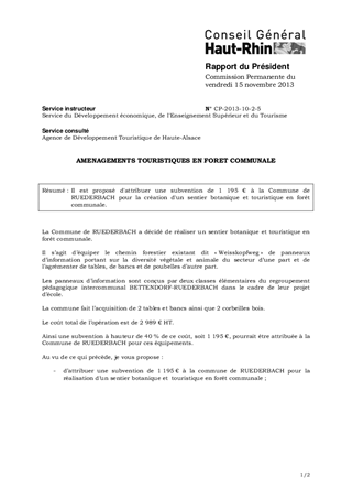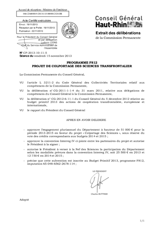 SOUTIEN AUX ACTIONS DU CONSERVATOIRE DES SITES ALSACIENS CONVENTION ANNUELLE 2013