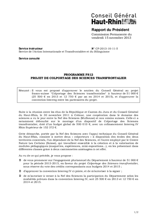 Il est proposé à la Commission Permanente le versement, pour l'année 2013, d’une subvention de fonctionnement de 23 538,33 € au Conseil Social et Economique de la REGIO, association de soutien aux travailleurs frontaliers, pour couvrir les frais d’un poste de secrétaire bilingue et une subvention de 1 268 € pour la prise en charge des honoraires du comptable de l’association, soit 24 806,33 € au total.