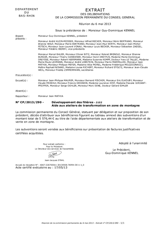 des délibérations du bureau exécutif du Conseil d'Administration du Pôle d'Archéologie Interdépartemental Rhénan - Réunion du 7 mai 2013.